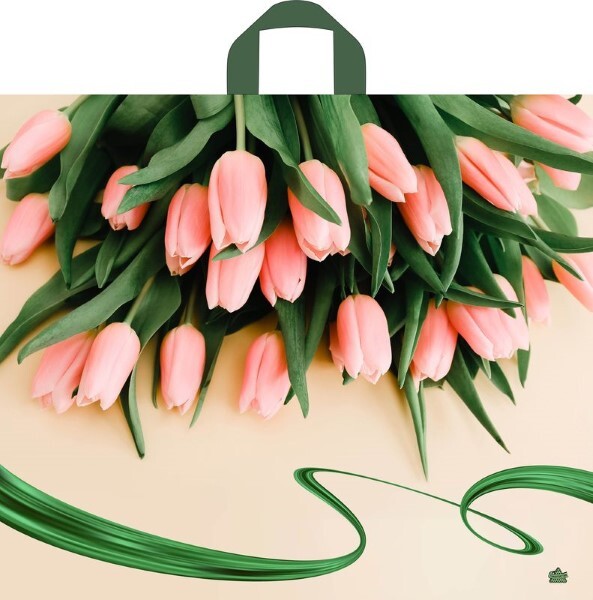 Полиэтиленовый пакет ПВД с петлевой ручкой 60 мкм 60х50 см Райские тюльпаны 25 шт
