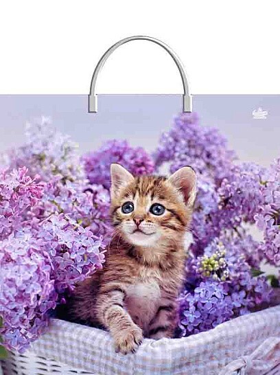 Полиэтиленовый пакет ПВД с пластиковой ручкой 100 мкм 36х37 см Котенок в сирени 10 шт
