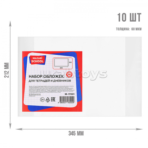 Набор обложек для тетрадей и дневников, 5 шт, ПВХ, 110 мкм. Размер: 210х350 мм.
