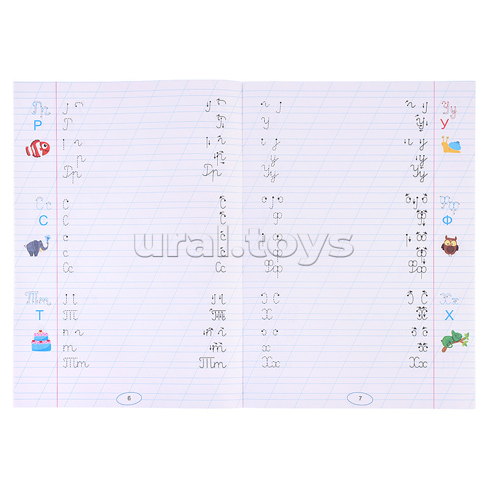 • Блок с прописями в узкую линейку с наклонными линиями.