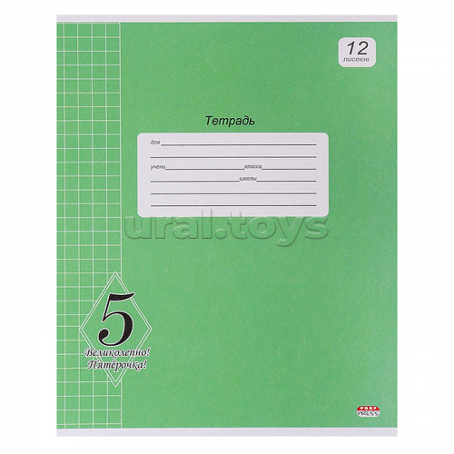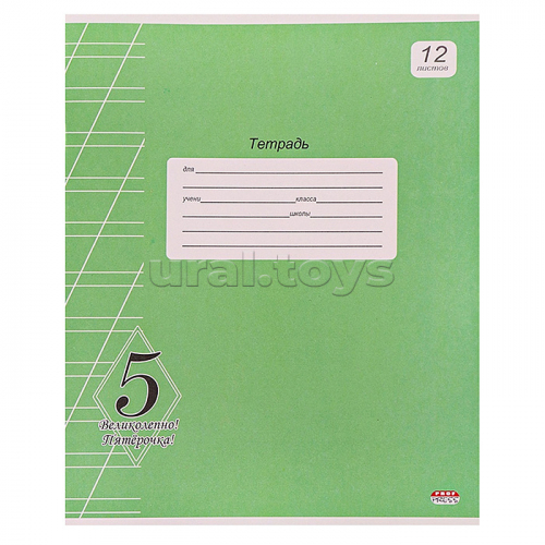 Тетрадь 12л. клетка "Великолепно! Пятерка!" (зеленая) офсет
