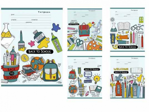 Тетрадь 12л. лин. "Собираемся в школу" цветная мелованная обложка, 4 дизайна