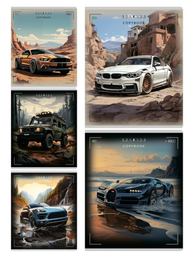 Тетрадь 48л. кл. "авто в природе" 5 дизайнов, цветная мелованная обложка