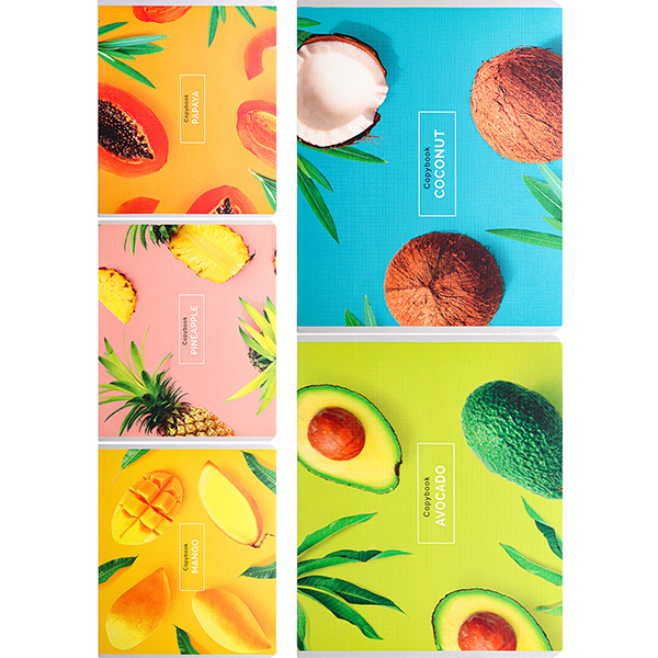 Тетрадь 48л. кл. "Фруктовый рай" 5 дизайнов, цветная мелованная обложка