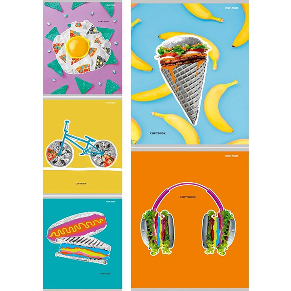 Тетрадь 48л. кл. "Коллаж фастфуд" цветная мелованная обложка, лён