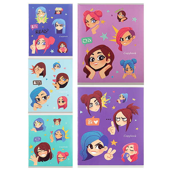 Тетрадь 48л. кл. "Стикеры девчонок" 5 дизайнов, цветная мелованная обложка