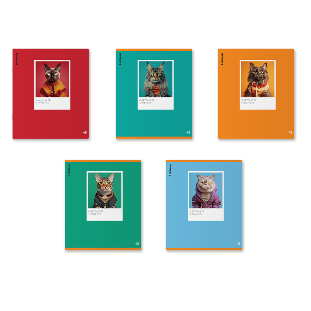 44р. 130р.Тетрадь общая ученическая ErichKrause CatTone, 48 листов, клетка, матовая ламинация+выборочный УФ-лак_MIX-PACK