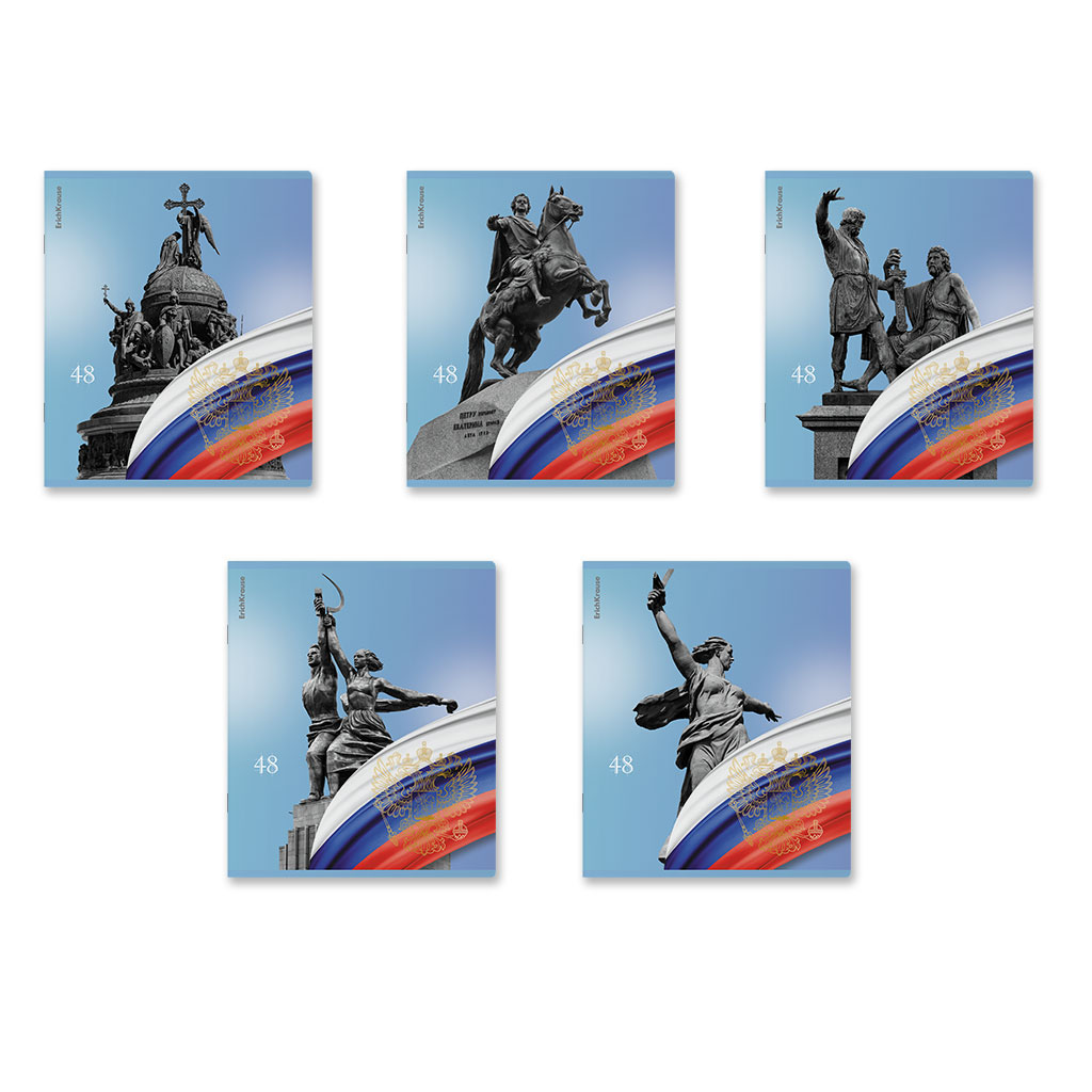 48р. 130р.Тетрадь общая ученическая ErichKrause Российский герб, 48 листов, клетка, матовая ламинация+выборочный УФ-лак+тиснение фольгой_MIX-PACK