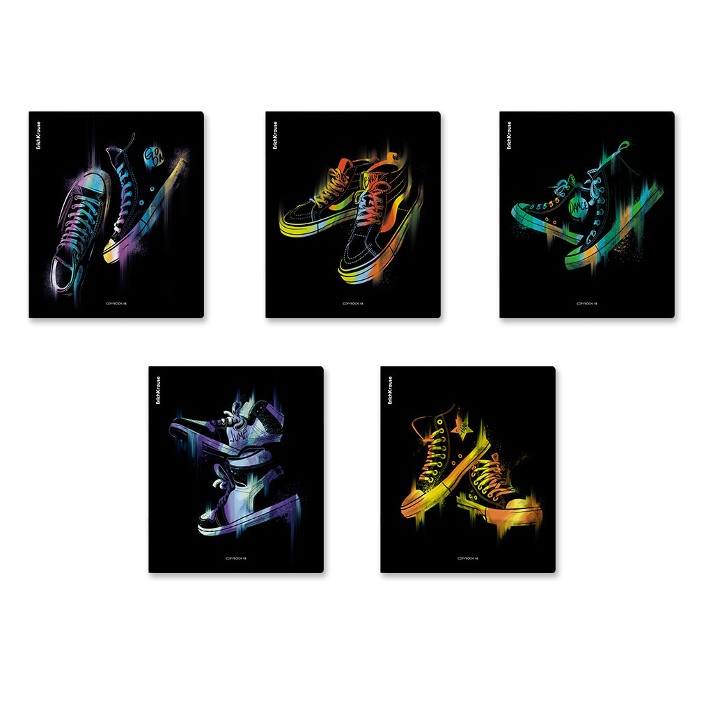 55р. 130р.Тетрадь общая ученическая ErichKrause Sneakers, 48 листов, клетка, ламинация soft-touch+выборочный УФ-лак_MIX-PACK