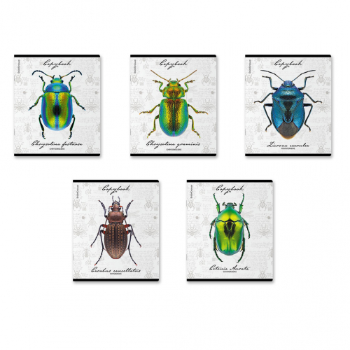 66р. 130р.Тетрадь общая ученическая ErichKrause Жуки, 48 листов, клетка, мат. лам.+выборочный УФ-лак+тиснение фольгой+конгрев, доп.лист_MIX-PACK