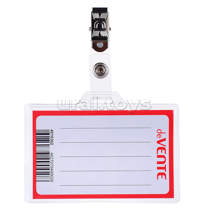 Бейдж 60x90 мм, прозрачный с клипом