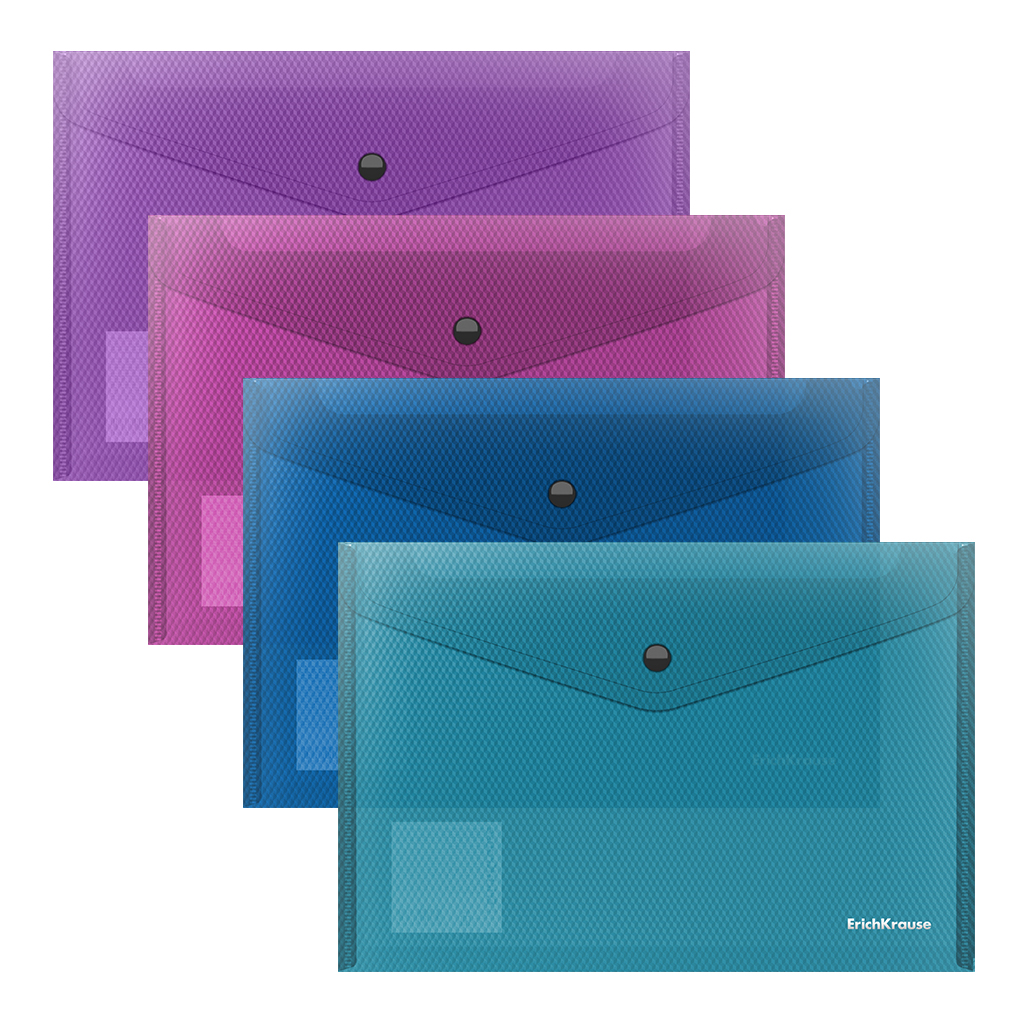 Папка-конверт на кнопке пластиковая ErichKrause® Vivid, полупрозрачная, B5, ассорти (в пакете по 12 шт.)