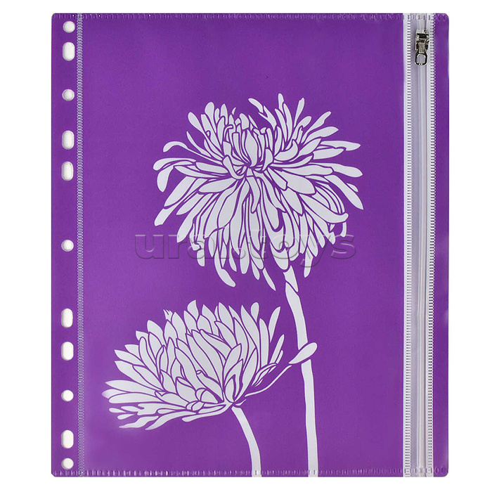 Папка для документов "Цветы" А5, 25.5х21, одно отделение, пластик, перфорация, гибкая молн