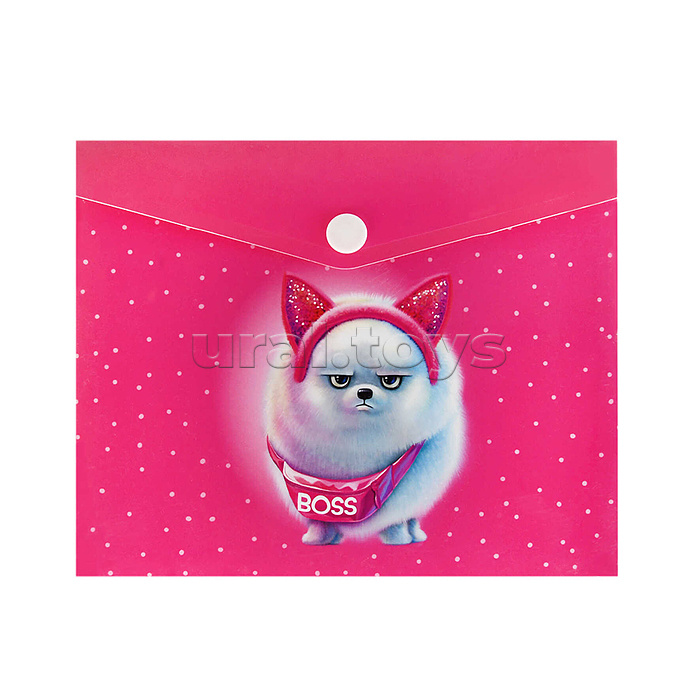 Папка конверт на кнопке А6 пластиковая "Босс шпиц"размер 17х14х0,5