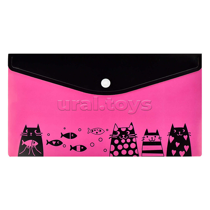 Папка на кнопке пластиковая "Коты с рыбками" полипропилен, размер 26x14 см, 1 отделение