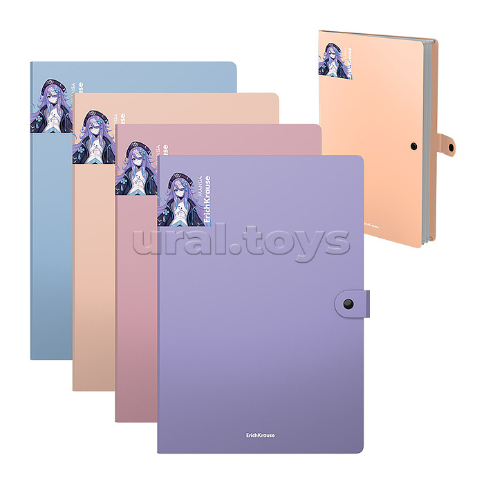 Папка-картотека на кнопке пластиковая Soft Manga, с 4 отделениями, A4, ассорти