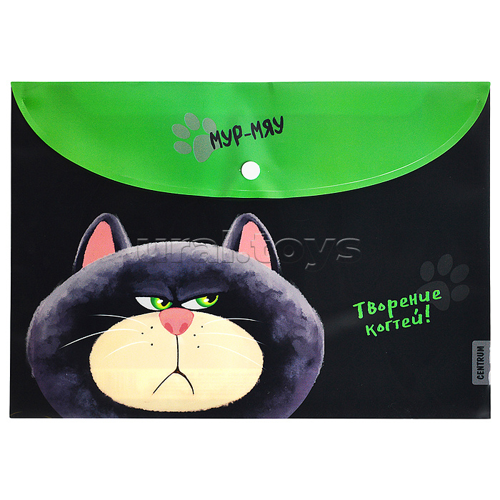 Папка-конверт на кнопке А4, пластик, "Недовольный кот" 160 мкм