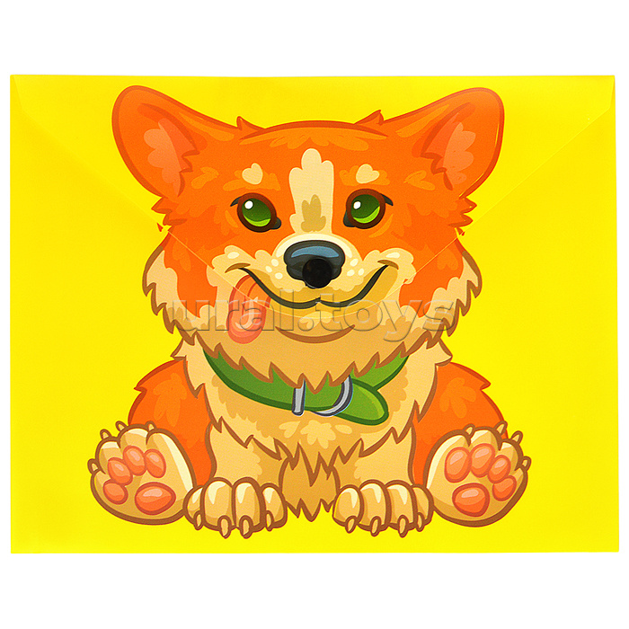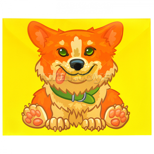 Папка-конверт на кнопке А5, пластик, "Корги" 180 мкм, двусторонняя печать