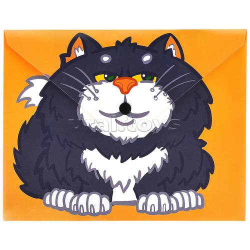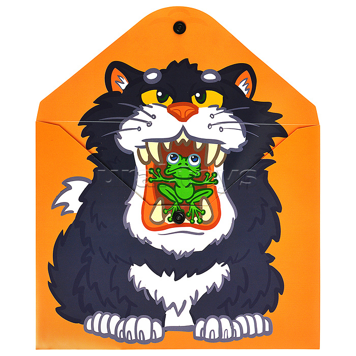 Папка-конверт на кнопке А5, пластик, "Кот с лягушкой" 180 мкм, двусторонняя печать