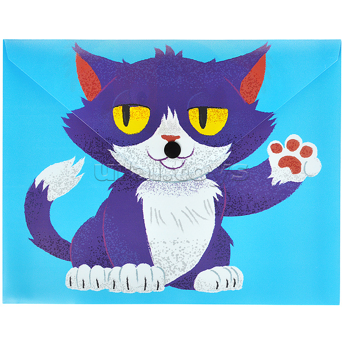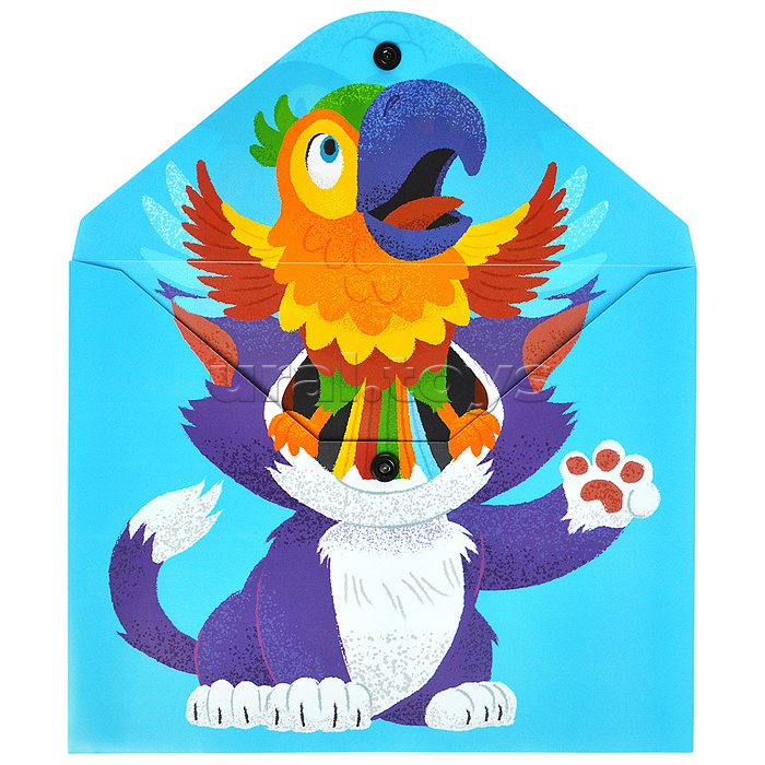 Папка-конверт на кнопке А5, пластик, "Кот с попугаем" 180 мкм, двусторонняя печать