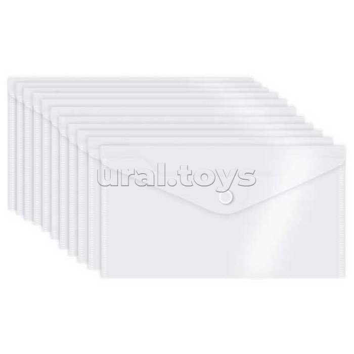 Папка-конверт на кнопке DL (260x140 мм) 180 мкм, полипропилен, прозрачная, 10 шт в упаковке