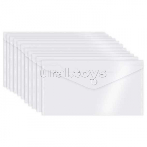 Папка-конверт на кнопке DL (260x140 мм) 300 мкм, полипропилен, прозрачная, 10 шт в упаковке