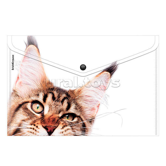 Папка-конверт на кнопке пластиковая Hiding Cats, A4, ассорти