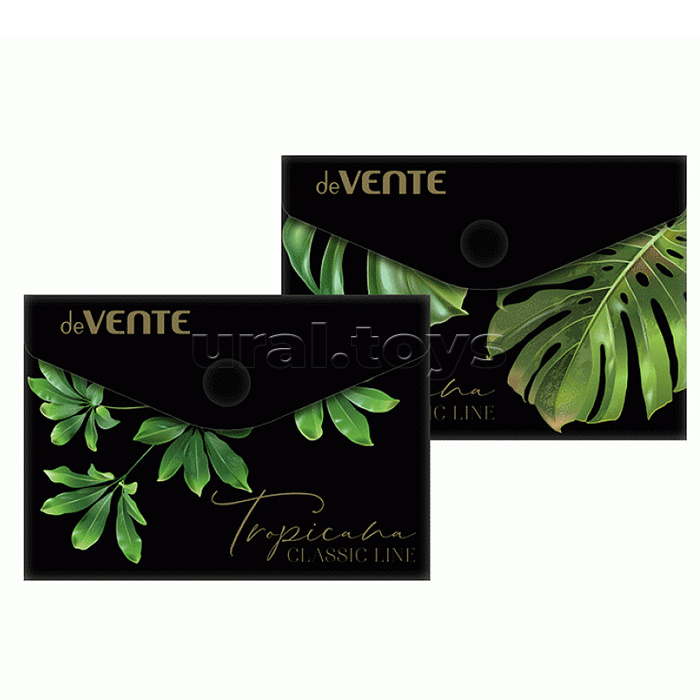 Папка-конверт на кнопке "Tropicana" A7 (105x74 мм) 180 мкм, непрозрачная с рисунком, тиснение фольгой, индивидуальная маркировка, 2 дизайна ассорти