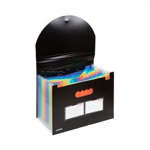 Папка на кнопке с 13-ю отделениями "Pastel" пластиковая 700 мкм, для документов формата C6 (17,8x12x2 см) внутренние отделения толщиной 170 мкм, в комплекте с бумажными цветными индексами, непрозрачная розовая