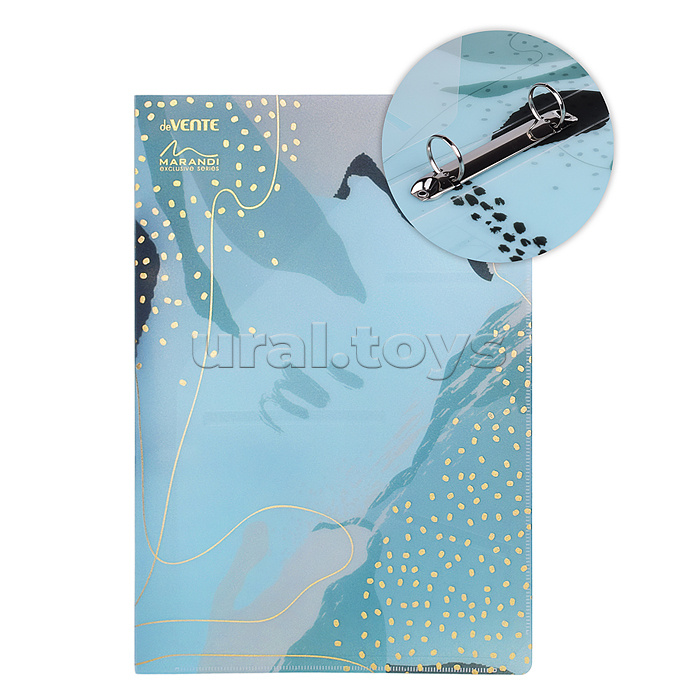 Папка на кольцах "Marandi. Sparkle" A4 (240x310x35 мм) 2 кольца Ø 30 мм, 650 мкм, полупрозрачная искрящаяся фактура, тиснение фольгой, на 250 листов бумаги или 50 вкладышей, внутренний карман 160 мкм, индивидуальная упаковка