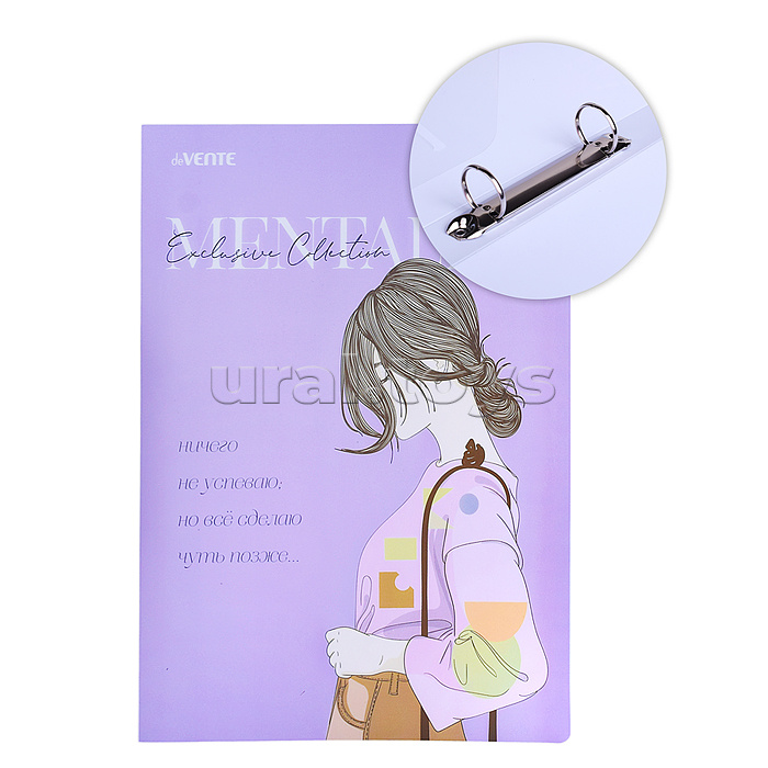 Папка на кольцах "Mentality" A4 (240x310x35 мм) 2 кольца Ø 30 мм, 650 мкм, фактура "песок" на 250 листов бумаги или 50 вкладышей, внутренний карман 160 мкм, индивидуальная упаковка