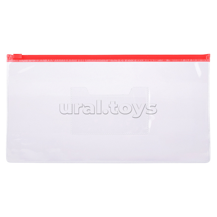 Папка на молнии DL (260x140 мм) ПВХ 150 мкм, с карманом для визитной карточки, молния 4 цвета ассорти
