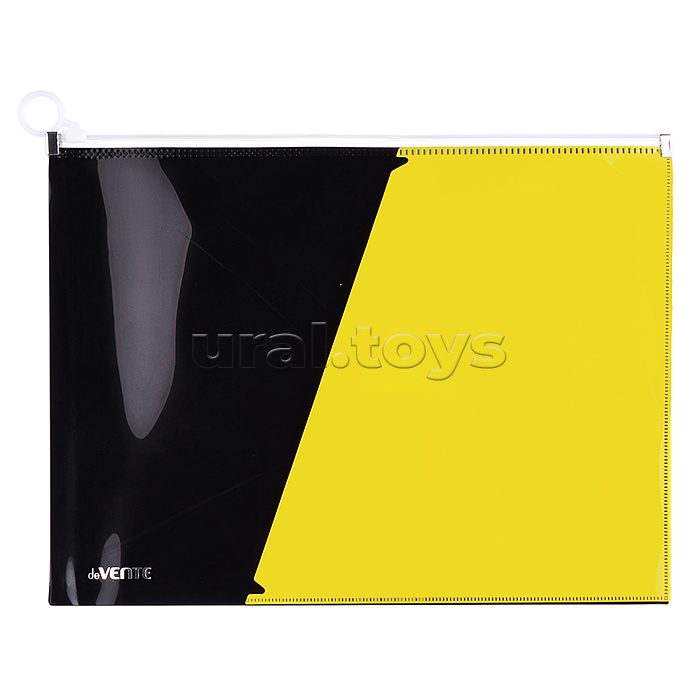 Папка на молнии с карманом "Monochrome" A4 (320x245х25 мм) полипропилен 180 мкм, с расширением 25 мм, с карманом, глянцевая, неоновая желтая, индивидуальная маркировка