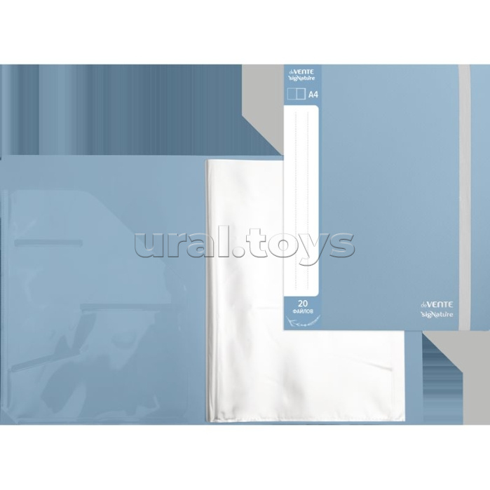 Папка с 020 вкладышами A4 "SigNature" A4 (235x310x15 мм) полипропилен 650 мкм, фактура ткань, вкладыши 30 мкм, внутренний карман 160 мкм, широкая резинка, индивидуальная упаковка, сумеречно синяя