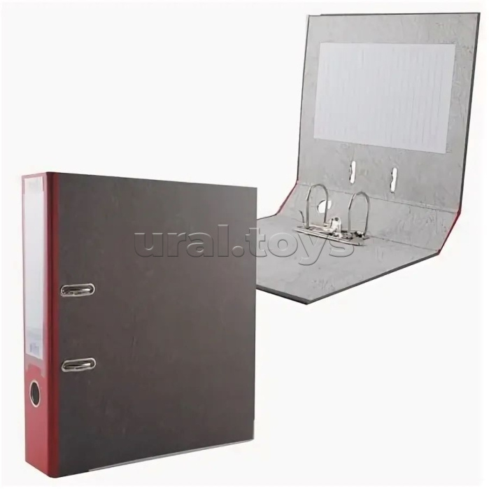 Папка с арочным механизмом "Attomex" A4 75 мм мраморная картонная разобранная, корешок из PVC, наварной карман с этикеткой, металлическая окантовка, запечатка форзаца, запечатка форзаца, красная