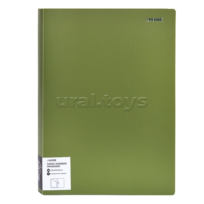 Папка с боковым прижимом "Marandi" A4 (235x310x20 мм) 650 мкм, фактура "песок" на 150 листов бумаги, внутренний карман 160 мкм, индивидуальная упаковка, непрозрачная фисташковая