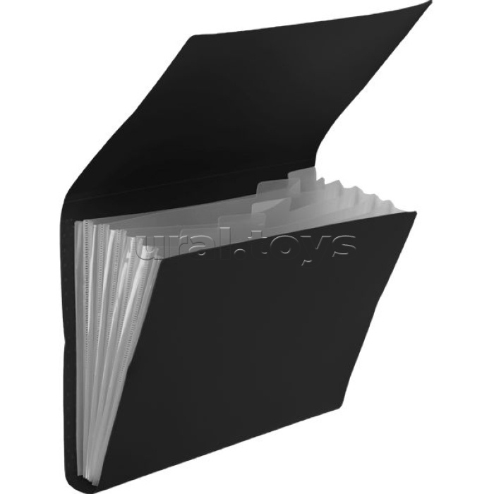 Папка с клапаном клапаном с 6-ю отделениями "Black" A4 550 мкм, фактура "песок" индивидуальная упаковка, непрозрачная черная