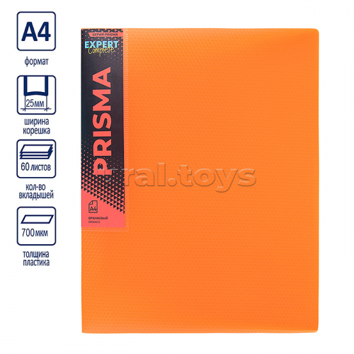 Папка с вкладышами A4 700 мкм. 25 мм эффект 3D. пурпурный 60 л. Prisma neon