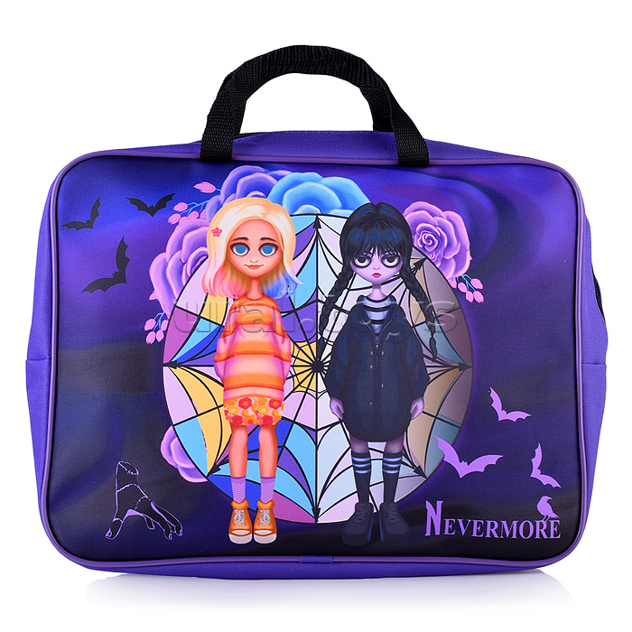 Папка - сумка "Вэнсдэй" А4, боковина - 75 мм. Предназначена для хранения альбомов, рисунков и прочих принадлежностей для школы и творчества. Модель выполнена из полиэстера. Папка оснащена текстильными ручками, имеется одно основное отделение на молнии с