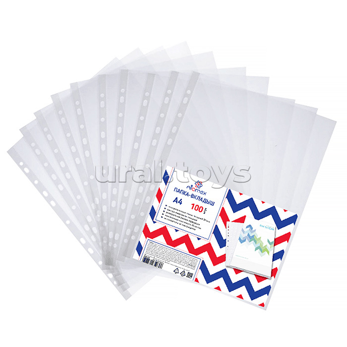 Вкладыш-файл A4 20(17) мкм, 100 штук ,гладкая фактура, с универсальной боковой перфорацией