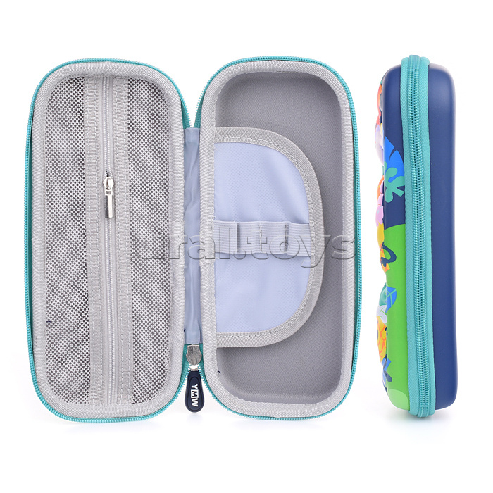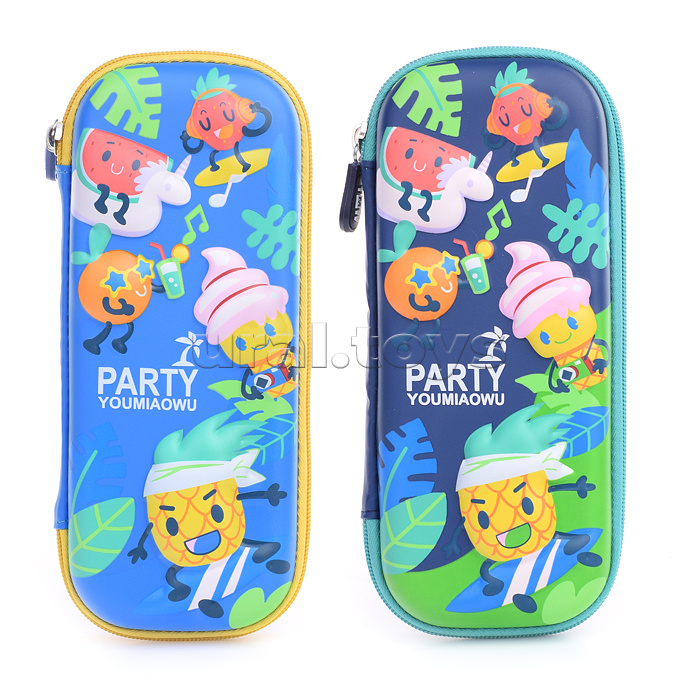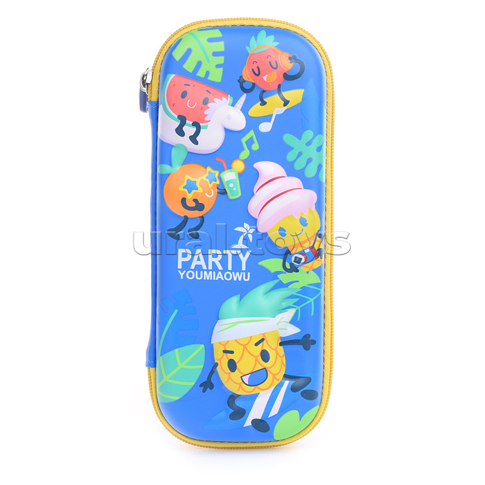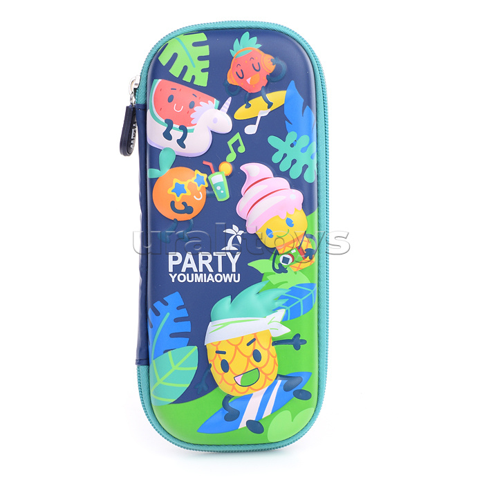 Пенал 1 отделение 1 откидная планка-органайзер, карман-сетка EVA молния, объемный рисунок, 220х95х50 мм, "Сrazy fruit", синий