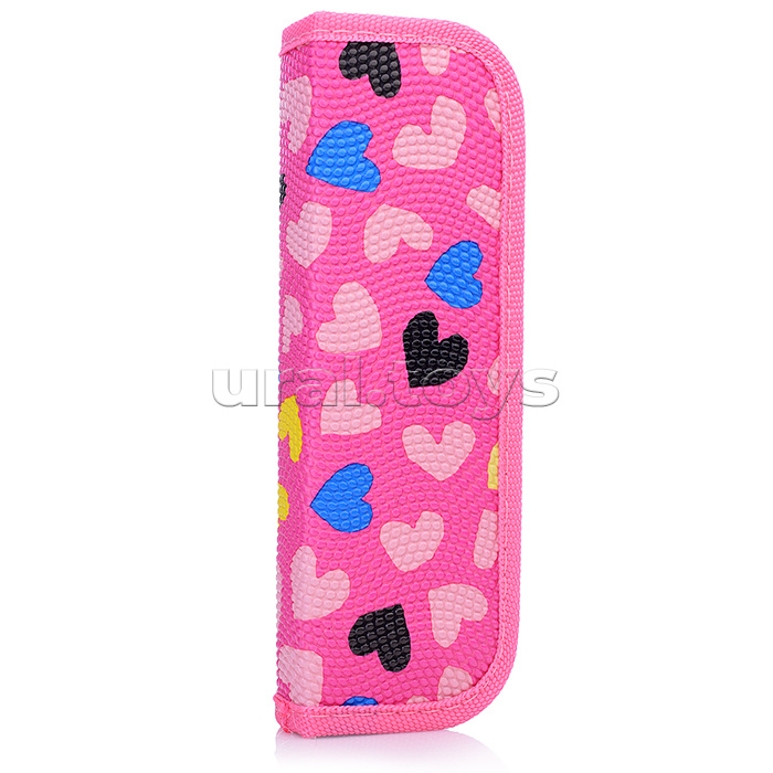 Пенал 1секц, малый "Сердечки-малиновый" принт. ткань "капля"
