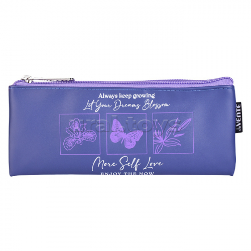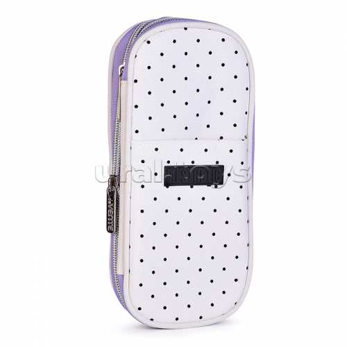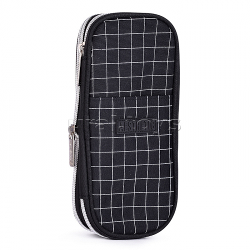 Пенал "Aesthetic" 21x8x3(7) см, овальный с возможностью расширения для 90 предметов, с внешним открытым карманом, с внутренним органайзером-створкой, 2-мя внутренними открытыми карманами, плотный канвас с рисунком, на молнии, с каучуковой аппликацией, чер