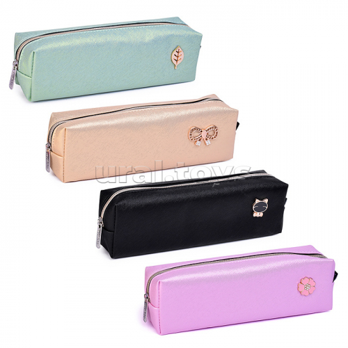 Пенал "Chic Pin" 21x6x4,5 см, прямоугольный для 30 предметов, антивандальная искусственная кожа до -40C, с брошкой, на молнии, ассорти 4 дизайна