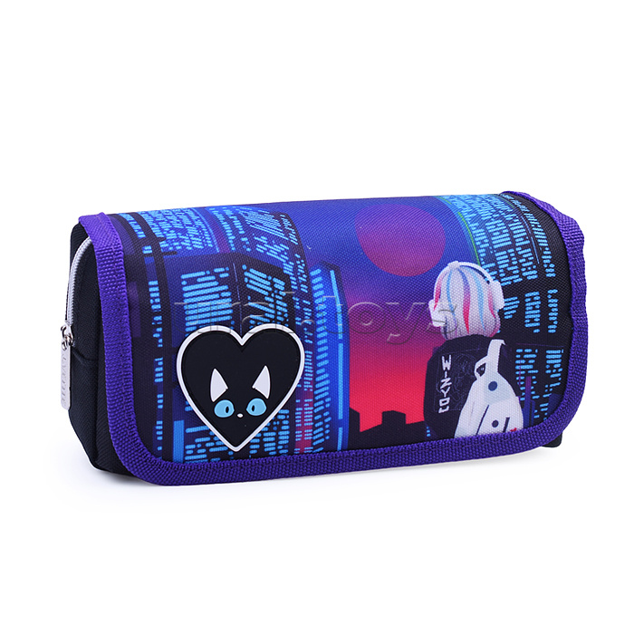 Пенал "City Girl" 20,5x9,5x7 см, прямоугольный для 40 предметов, отделение на молнии, наружный карман на молнии, с верхней створкой на липучке, текстильный с каучуковыми аппликациями