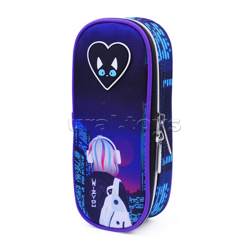 Пенал "City Girl" 21x8x5 см, овальный для 50 предметов, с внутренним органайзером-створкой, текстильный с каучуковой аппликацией, на молнии
