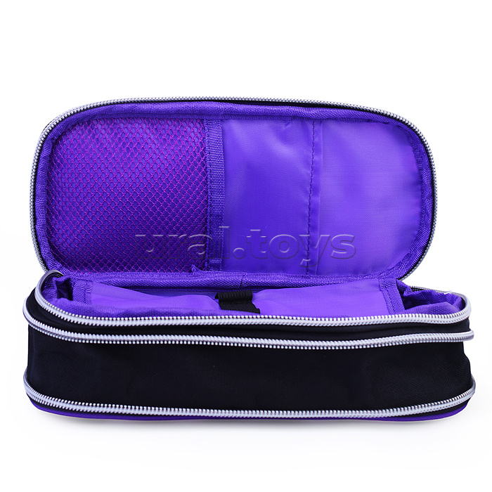 Пенал "Contemporary Mind" 21x8x3(7) см, овальный с возможностью расширения для 90 предметов, с внешним открытым карманом, с внутренним органайзером-створкой, 2-мя внутренними открытыми карманами, высококачественный полиэстер, тракторная серебристая молния