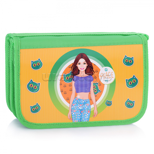 Пенал двухсекционный большой с откидной планкой "Веселая девчонка"