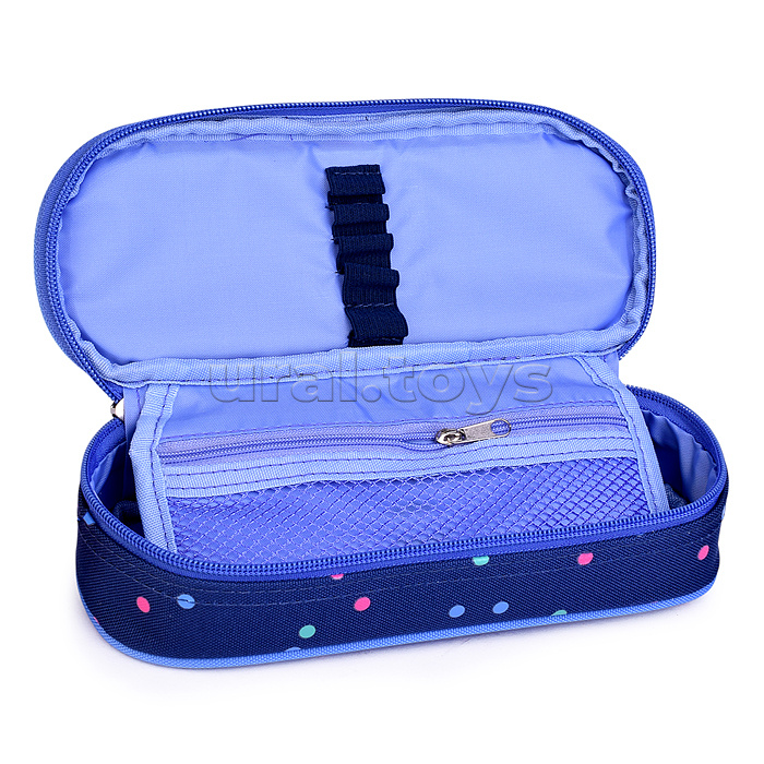 Пенал "Happy Pinguin" 21x8x5 см, овальный для 50 предметов, с внутренним органайзером-створкой, плотный износостойкий полиэстер с водоотталкивающей пропиткой, на молнии