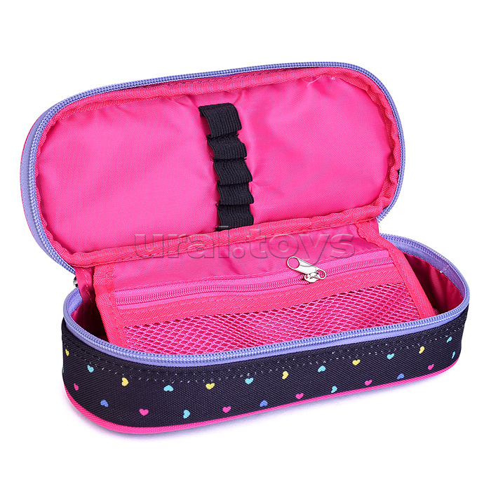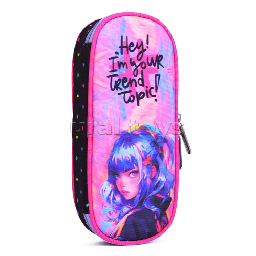Пенал "Hey Girl" 21x8x5 см, овальный для 50 предметов, с внутренним органайзером-створкой, плотный износостойкий полиэстер с водоотталкивающей пропиткой, на молнии